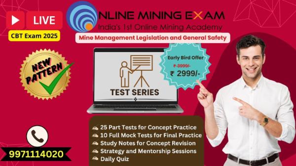 This comprehensive package ensures that candidates are thoroughly prepared for their mining competency exams with a structured test series, continuous practice through quizzes, and valuable study resources.